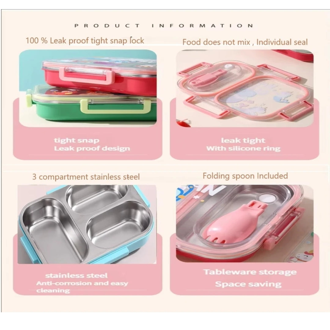 3 section steel insulated tiffin. Comes with a foldable fork. Leak proof. Price is per piece.