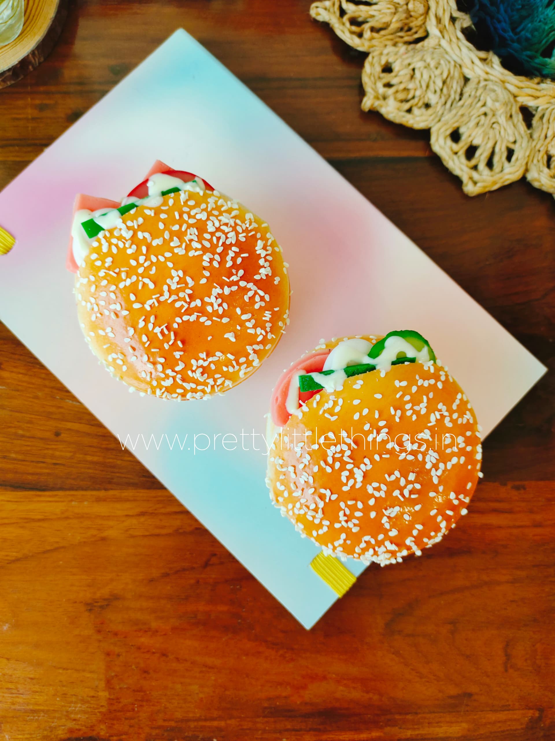Delicious burger fridge magnets  Approx diameter 8 to 9 cms by thickness 3/4 cms  Price is per...