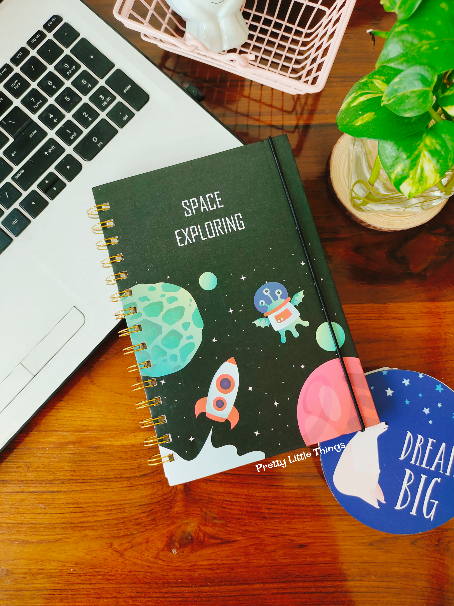 A5 size spiral hard cover diary in space theme.  Single lined ruled pages inside. Available in 2...