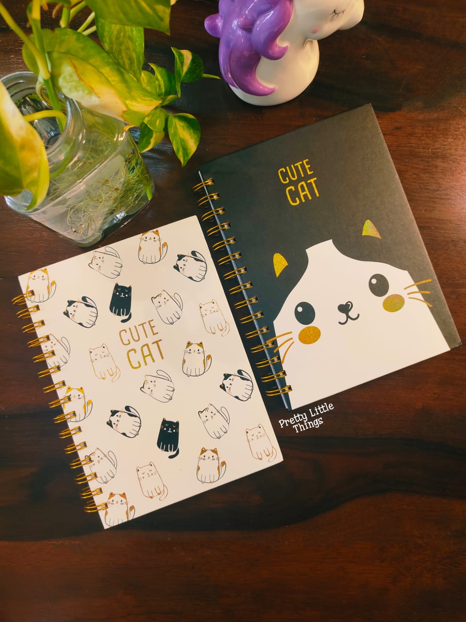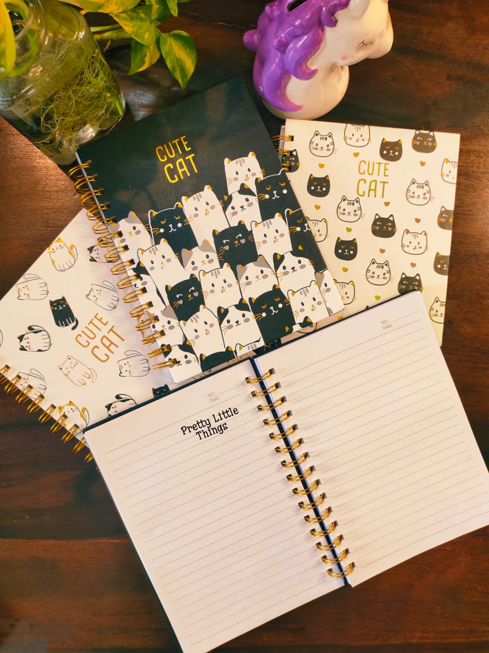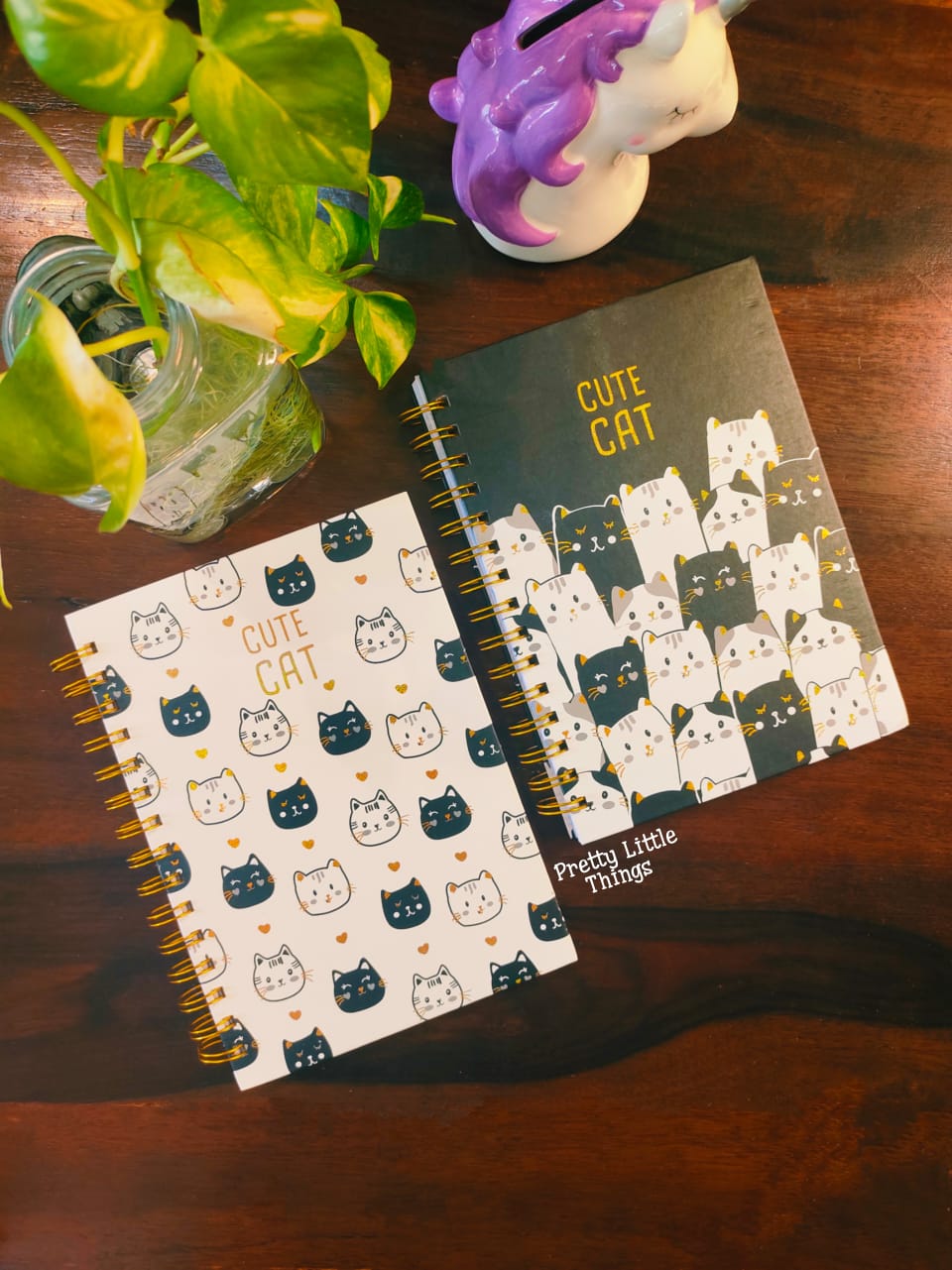 Cat themed A5 size hard cover spiral bound diaries/ notebooks.  Price is per piece.  Single lined ruled...