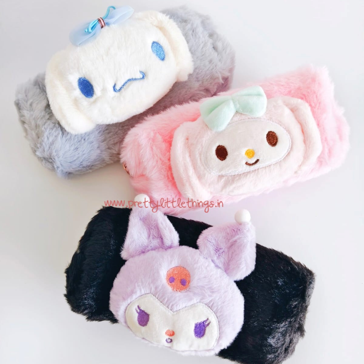 Kawaii Sanrio theme Plush Pouch. Multiutility pouch. Cosmetics pouch. Stationery pouch. Kuromi Theme. My Melody Theme. Cinnamoroll theme. Price is per piece. These Faux fur pouches are perfect for carrying your small personal belongings. These are perfect for keeping your favorite stationery or your cosmetics. Approx size : 20 cms...