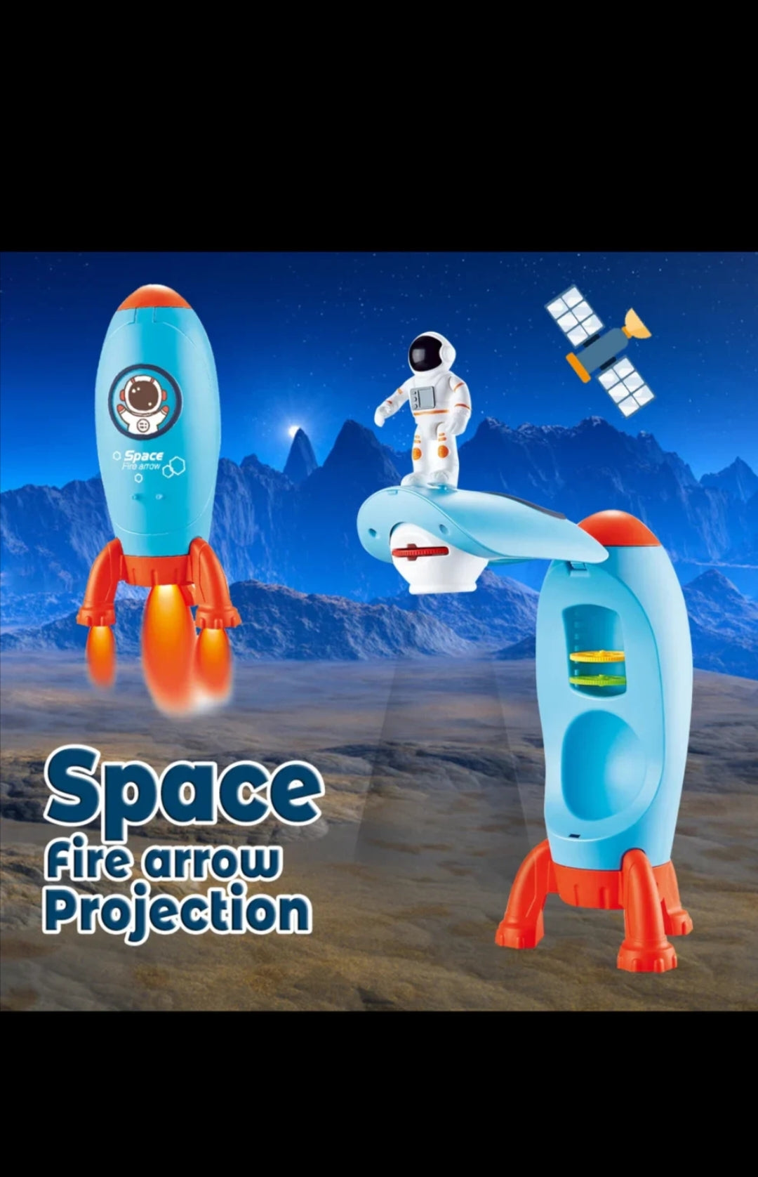 Box contains rocket projector kit, 3 lantern slides, 18 patterns for drawing, 12 color pens. Runs on...
